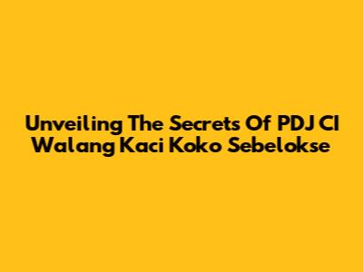 Unveiling The Secrets Of PDJ CI Walang Kaci Koko Sebelokse