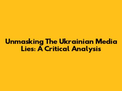 Unmasking The Ukrainian Media Lies: A Critical Analysis