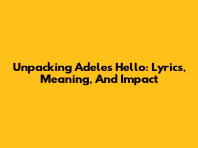 Unpacking Adele's 'Hello': Lyrics, Meaning, And Impact