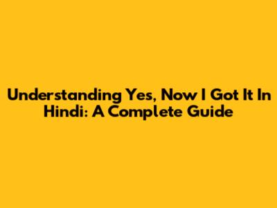 Understanding 'Yes, Now I Got It' In Hindi: A Complete Guide