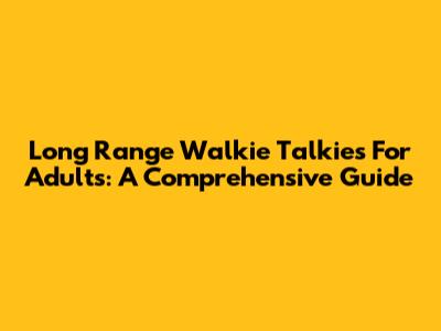 Long Range Walkie Talkies For Adults: A Comprehensive Guide