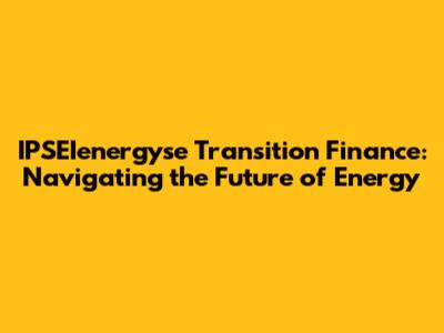 Hey guys! Let's dive into the fascinating world of IPSEIenergyse transition finance. It's a bit of a mouthful, right? But essentially, we're talking about how money moves to support the shift towards cleaner, more sustainable energy sources. Think about it: we're moving away from the old ways of fossil fuels and towards renewable energy like solar, wind, and hydro. That massive change requires a whole lot of cash. And that's where transition finance comes in, playing a crucial role in enabling this critical energy transition. This article is your guide to understanding the basics, the players involved, and the exciting possibilities that lie ahead. It's not just about the technicalities of finance; it's about building a better future, one investment at a time. It’s about building a sustainable future where the air is cleaner, the climate is stable, and energy is accessible to everyone. The transition is not just a technological challenge, it's also a financial one. Getting the right financial tools and strategies in place is essential to successfully move towards cleaner energy sources.