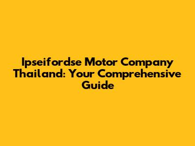 Unveiling Ipseifordse Motor Company Thailand: A Quick Overview