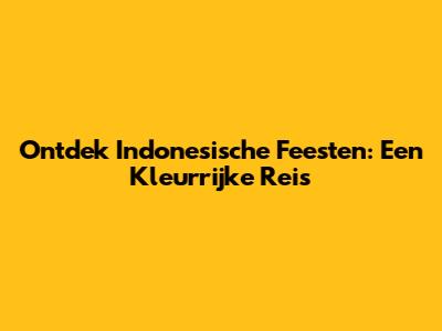 Ontdek Indonesische Feesten: Een Kleurrijke Reis
