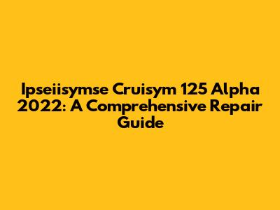 Hey guys! So you've got yourself an Ipseiisymse Cruisym 125 Alpha 2022, huh? Awesome choice! These things are pretty sweet, but like any machine, they sometimes need a little TLC. Don't worry, you're in the right place! This guide is designed to be your go-to resource for everything related to repairing and maintaining your Ipseiisymse Cruisym 125 Alpha 2022. We'll cover everything from the basics to some more advanced stuff, so you can keep your ride running smoothly. Whether you're a seasoned mechanic or just starting out, this guide is here to help. We'll break down common issues, provide step-by-step instructions, and offer some helpful tips and tricks to make the repair process as painless as possible. Let's get started and dive into the world of keeping your Cruisym 125 Alpha 2022 in tip-top shape!
