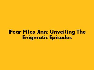 IFear Files Jinn: Unveiling The Enigmatic Episodes