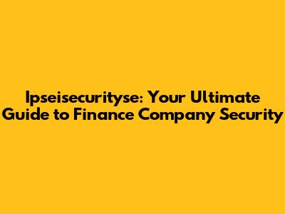 Ipseisecurityse: Your Partner in Finance Company Security