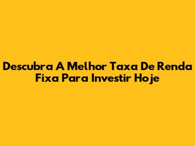 Descubra A Melhor Taxa De Renda Fixa Para Investir Hoje