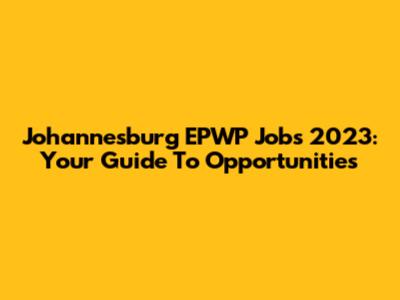 Johannesburg EPWP Jobs 2023: Your Guide To Opportunities