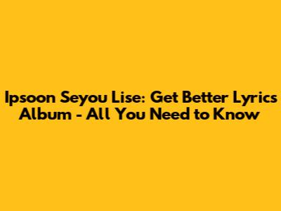 Hey guys! Have you ever stumbled upon a song that just gets you? Like, the lyrics are so spot-on that you feel like the artist peeked into your diary? Well, buckle up because we're diving deep into the world of Ipsoon Seyou Lise and their incredible album, "Get Better." This isn't just music; it's an experience, a journey, and a comforting hand on your shoulder when you need it most. So, let's explore what makes this album so special, from its heartfelt lyrics to its soul-stirring melodies.