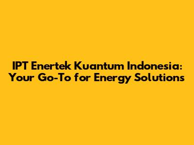 Hey guys! Let's dive deep into the world of IPT Enertek Kuantum Indonesia. If you're looking for top-notch energy solutions, you've come to the right place. We're going to explore what makes this company stand out in the Indonesian energy sector and why they are such a big deal for businesses and industries. Get ready to learn about their innovative approaches, their commitment to sustainability, and how they're shaping the future of energy in Indonesia. So, buckle up, and let's get started on this exciting journey!