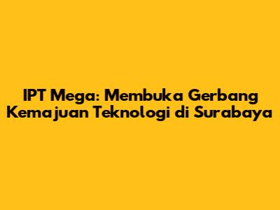 Dengan potensi pertumbuhan yang besar ini, IPT Mega akan terus menjadi penggerak utama kemajuan teknologi di Surabaya. Jadi, mari kita dukung IPT Mega untuk mewujudkan Surabaya sebagai kota teknologi yang membanggakan!