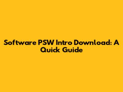 Software PSW Intro Download: A Quick Guide