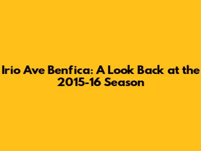 Let's dive deep into the archives and reminisce about Irio Ave's time with Benfica during the 2015-16 season. For those of you who might not remember every single detail, or maybe you're new to following Portuguese football, we're going to break down Irio Ave’s contributions, the team's overall performance, and some of the key moments that defined that year. So, buckle up and let's get started!