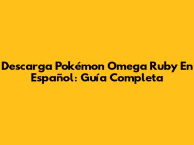 Descarga Pokémon Omega Ruby En Español: Guía Completa