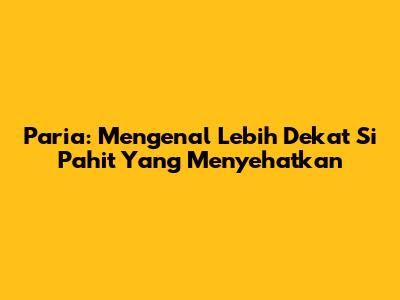 Paria: Mengenal Lebih Dekat Si Pahit Yang Menyehatkan
