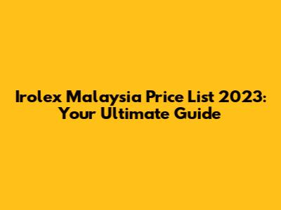 Decoding the Irolex Malaysia Price List 2023
