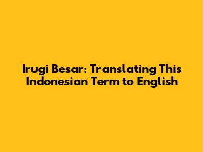 Hey guys! Ever stumbled upon a cool Indonesian word and wondered what it means in English? Well, today we're diving deep into one such term: "Irugi Besar." Let's break it down, explore its meanings, and see how you can use it in everyday conversations. Understanding the nuances of different languages is super important, especially when you're trying to connect with people from different cultures. So, let's get started and unravel the mystery behind "Irugi Besar"! Trust me, by the end of this article, you'll be a pro at using this term and impressing your friends with your newfound knowledge. We'll cover everything from the literal translation to the more contextual uses, ensuring you're well-equipped to handle any situation where this phrase might pop up. So, grab a cup of coffee, sit back, and let's embark on this linguistic adventure together! You'll be surprised at how much you can learn in just a few minutes. And who knows, maybe you'll even start picking up more Indonesian phrases along the way! Learning a new language can be daunting, but breaking it down into smaller, manageable chunks like this makes it so much easier and more enjoyable. Plus, understanding the cultural context behind a word can give you a deeper appreciation for the language and the people who speak it. So, are you ready to become an "Irugi Besar" expert? Let's do it!