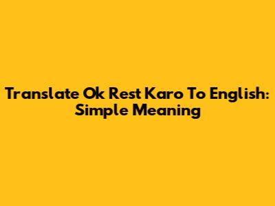 Translate "Ok Rest Karo" To English: Simple Meaning