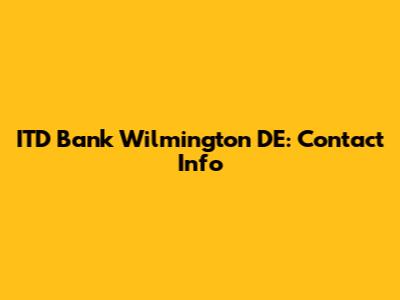 ITD Bank Wilmington DE: Contact Info