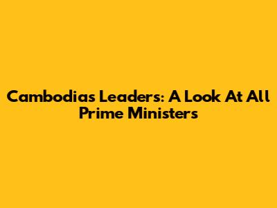 Cambodia's Leaders: A Look At All Prime Ministers