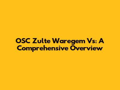 OSC Zulte Waregem Vs: A Comprehensive Overview