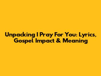 Unpacking 'I Pray For You': Lyrics, Gospel Impact & Meaning