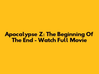Apocalypse Z: The Beginning Of The End - Watch Full Movie