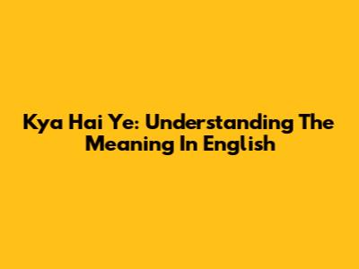 Kya Hai Ye: Understanding The Meaning In English