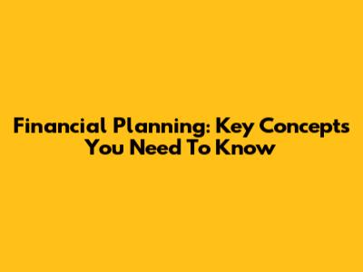 Financial Planning: Key Concepts You Need To Know