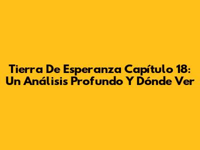 Tierra De Esperanza Capítulo 18: Un Análisis Profundo Y Dónde Ver