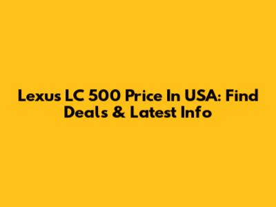 Lexus LC 500 Price In USA: Find Deals & Latest Info