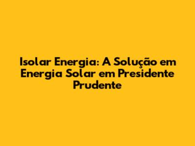 Isolar Energia: Confiabilidade e Expertise em Presidente Prudente