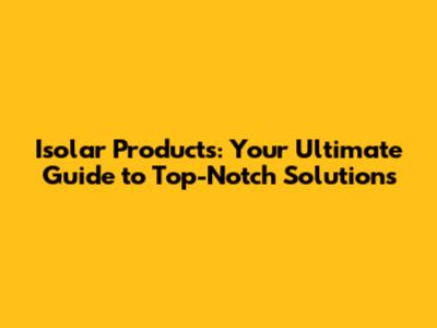 Isolar Products: Your Guide To Quality Solutions