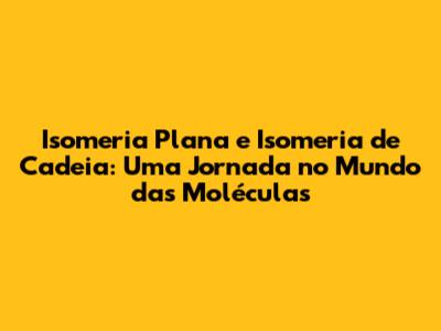 Isomeria plana e isomeria de cadeia são conceitos fundamentais na química orgânica, essenciais para compreender a diversidade e o comportamento das moléculas. Se você é estudante, professor, ou simplesmente alguém curioso sobre como as substâncias são formadas, este artigo é para você! Vamos mergulhar fundo nesses temas, desmistificando as estruturas moleculares e mostrando como a isomeria afeta as propriedades dos compostos.
