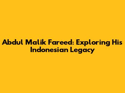 Abdul Malik Fareed: Exploring His Indonesian Legacy
