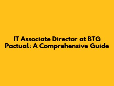 Hey everyone! Today, we're diving deep into the world of finance and technology to explore the role of an IT Associate Director at BTG Pactual. For those who might not know, BTG Pactual is a major player in the investment banking world, and they're always on the lookout for top-tier talent in the IT sector. This role is a pretty big deal, offering a fantastic opportunity to make a real impact on a global scale. So, grab your coffee, and let's break down what this role entails, what it takes to succeed, and why it might be the perfect fit for your career aspirations. We'll cover everything from the day-to-day responsibilities to the skills you'll need to shine in this dynamic environment. Get ready to learn about the key aspects, requirements, and opportunities associated with this role, and find out if you have what it takes to become an IT Associate Director at BTG Pactual!