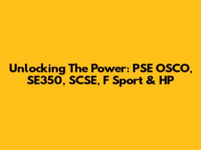 Unlocking The Power: PSE OSCO, SE350, SCSE, F Sport & HP