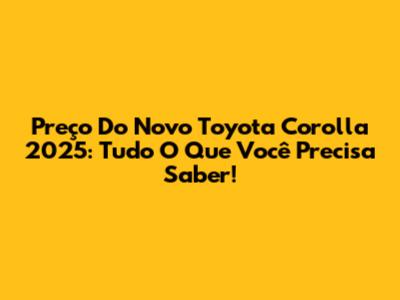 Preço Do Novo Toyota Corolla 2025: Tudo O Que Você Precisa Saber!
