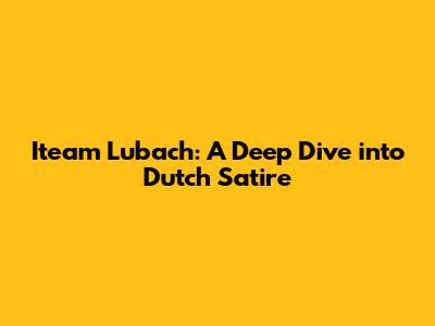 Hey guys! Ever heard of Iteam Lubach? If not, buckle up because you're in for a treat. This isn't your run-of-the-mill news show; it's a rollercoaster of satire, wit, and sharp commentary that has taken the Netherlands by storm. Think of it as the Dutch version of The Daily Show or Last Week Tonight, but with its own unique flavor. Let's dive deep into what makes Iteam Lubach so special, why it's become a cultural phenomenon, and why you should totally check it out.