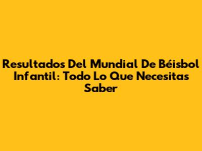 Resultados Del Mundial De Béisbol Infantil: Todo Lo Que Necesitas Saber