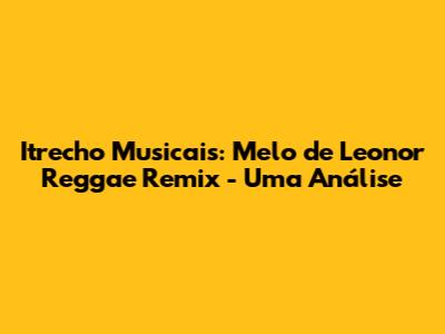Itrecho Musicais, conhecido por explorar as profundezas da música eletrônica e suas diversas vertentes, apresenta uma análise aprofundada do Melo de Leonor Reggae Remix. Este remix, que funde a melodia cativante de Leonor com a energia vibrante do reggae, é uma jornada sonora que merece atenção especial. Vamos mergulhar nos elementos que tornam esta faixa tão especial, explorando a estrutura musical, os instrumentos utilizados, a mensagem transmitida e o impacto cultural que ela pode gerar. Preparem-se, galera, porque a gente vai fundo nessa!