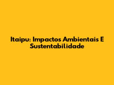 Itaipu: Impactos Ambientais E Sustentabilidade