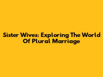 Sister Wives: Exploring The World Of Plural Marriage