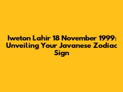 Hey guys! Ever wondered about the secrets hidden in your birthdate according to Javanese tradition? If you were born on November 18, 1999, you've come to the right place! Let's dive into the fascinating world of Iweton and uncover what it means for you. Understanding your weton can provide insights into your personality, strengths, weaknesses, and even your destiny. This ancient Javanese system combines the Gregorian calendar with the Javanese calendar, creating a unique astrological profile that many believe influences various aspects of life. Whether you're a seasoned weton enthusiast or just curious about this cultural gem, get ready for an enlightening journey! We'll explore the specific elements that make up your weton, including the day, the market day, and their corresponding numerical values. We'll also delve into the characteristics associated with your weton, offering a glimpse into how it might shape your life path. So, grab a cup of coffee, get comfortable, and let's unravel the mysteries of your Iweton!