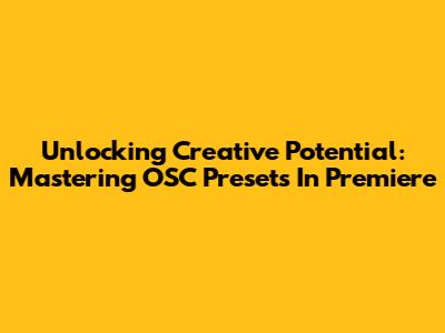 Unlocking Creative Potential: Mastering OSC Presets In Premiere