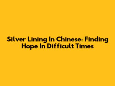 Silver Lining In Chinese: Finding Hope In Difficult Times