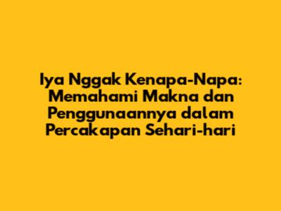 Istilah "iya nggak kenapanapa" seringkali kita dengar dalam percakapan sehari-hari, terutama di Indonesia. Tapi, apa sebenarnya arti dari frasa ini? Dan bagaimana kita bisa menggunakannya dengan tepat? Artikel ini akan membahas secara mendalam mengenai arti, penggunaan, dan konteks yang relevan dengan ungkapan "iya nggak kenapanapa." Mari kita selami lebih dalam, guys, biar nggak bingung lagi kalau ada yang bilang gini!