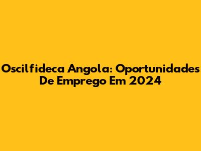 Oscilfideca Angola: Oportunidades De Emprego Em 2024