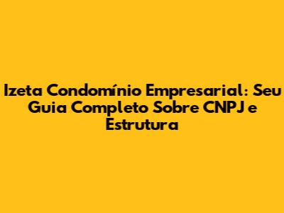 Hey pessoal! Se você está buscando informações detalhadas sobre o Izeta Condomínio Empresarial e, principalmente, sobre o CNPJ envolvido, chegou ao lugar certo. Neste artigo, vamos mergulhar fundo nos aspectos cruciais que você precisa conhecer. Prepare-se para uma análise completa, com dicas valiosas e informações que vão te ajudar a entender tudo sobre esse empreendimento e como ele funciona. Então, vamos nessa?